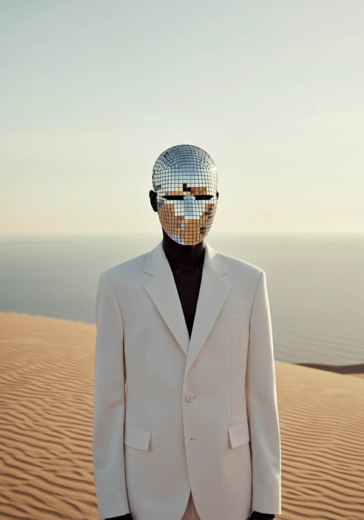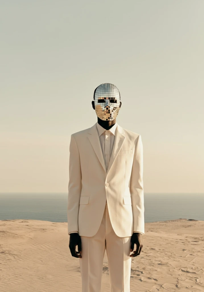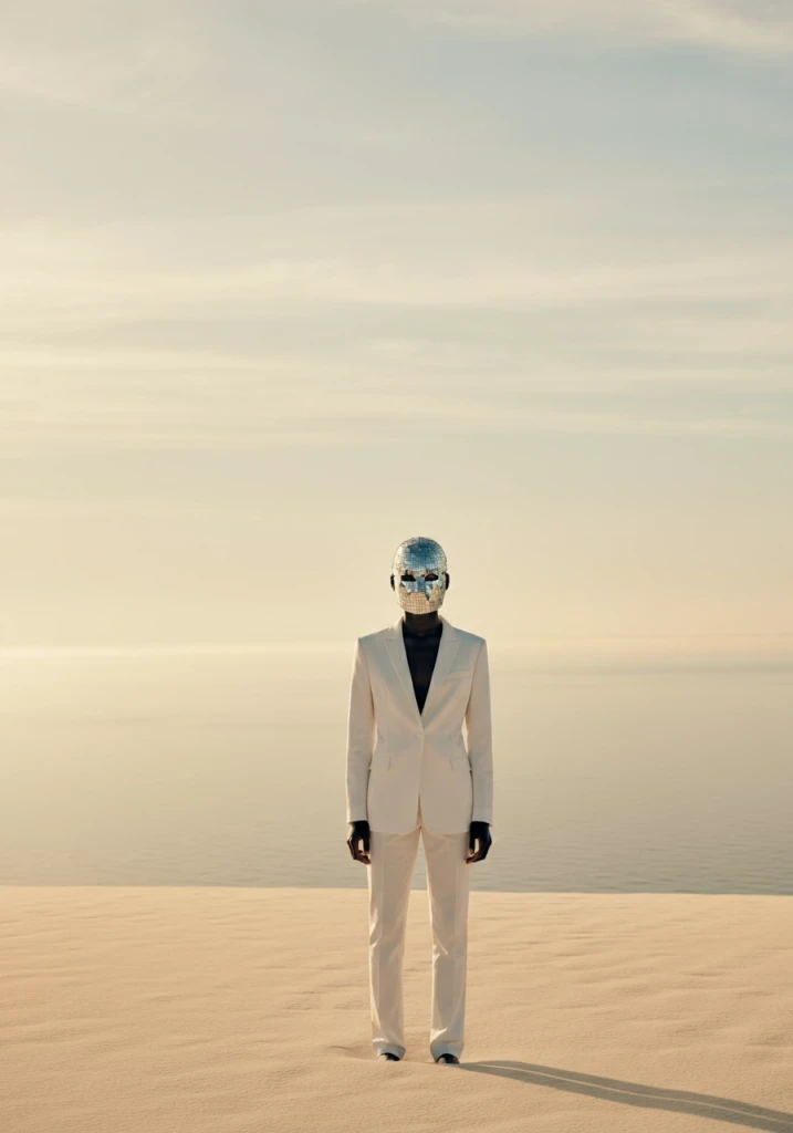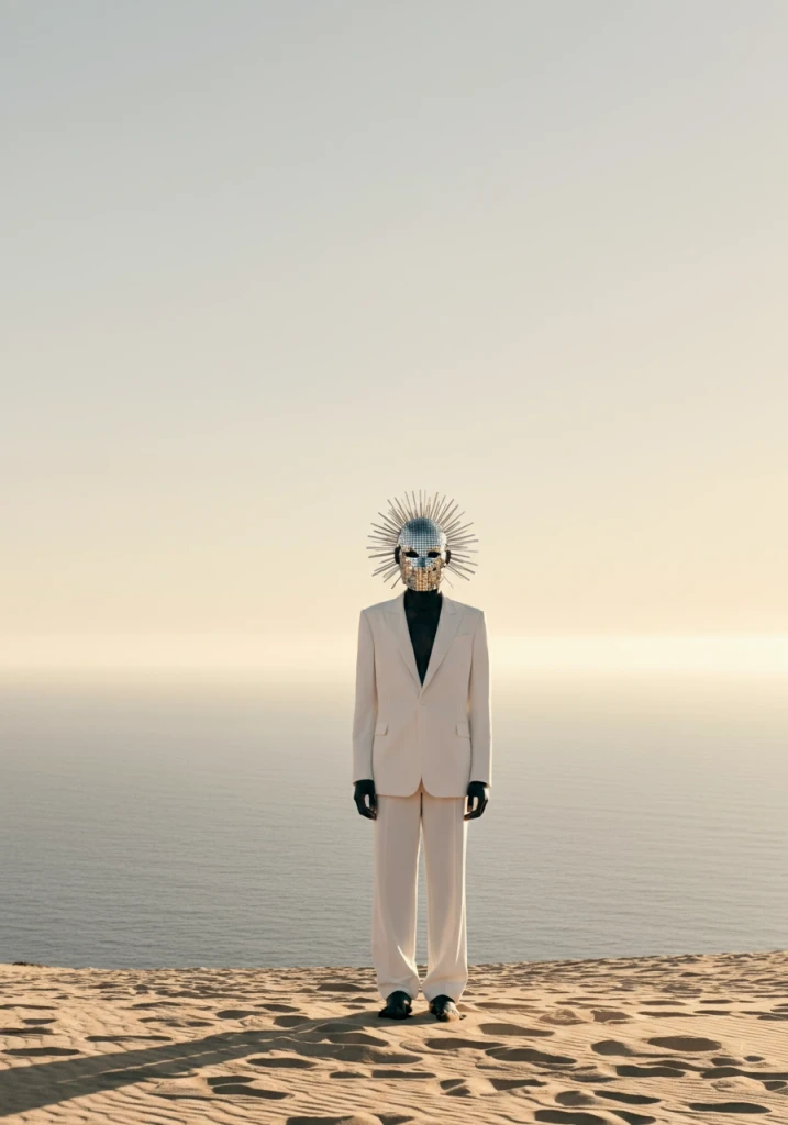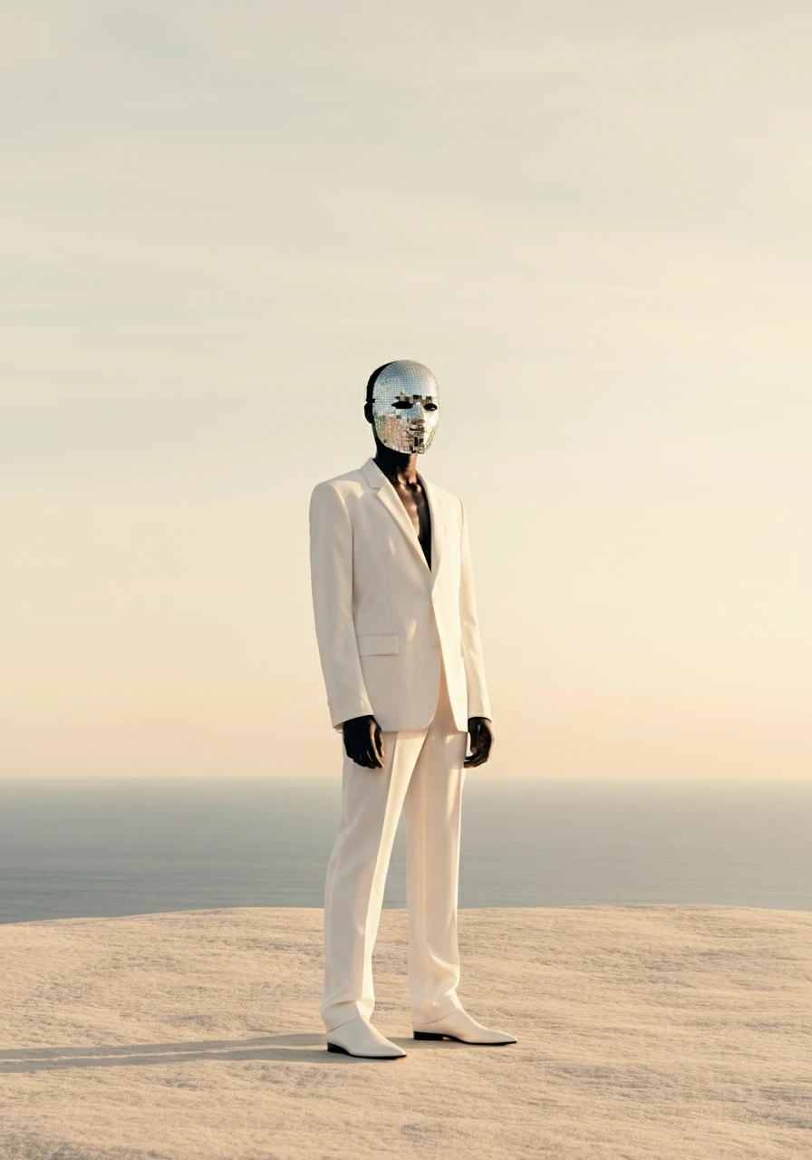 Más que una campaña, es una visión. Una exploración donde el futuro no se espera, se proyecta. La silueta impecable, la máscara de espejo, la esfera flotante: símbolos de una identidad que trasciende el tiempo.